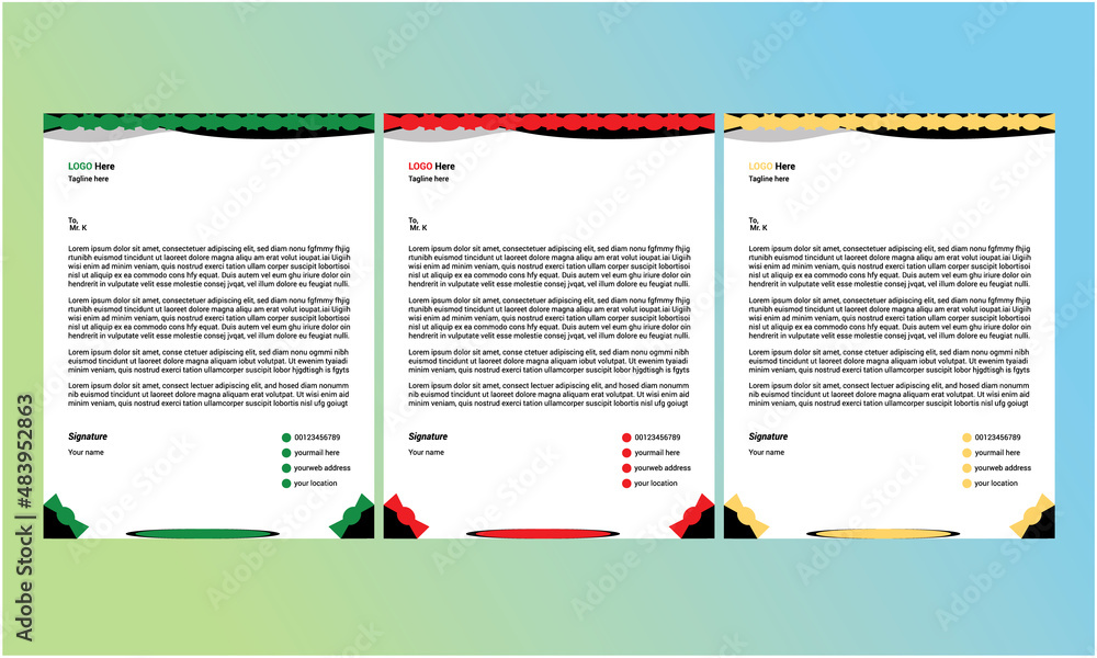 Multiple Colors Letterhead Template Editable Letterhead Design Stock