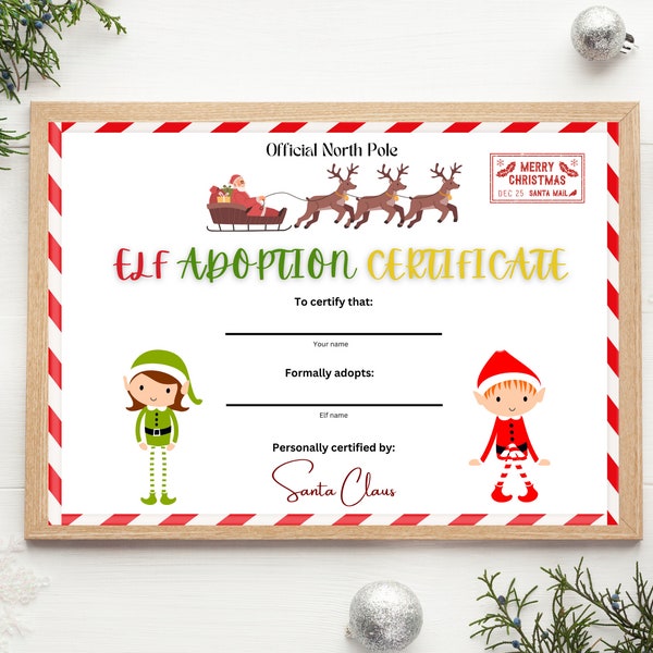 Elf Reindeer Adoption Certificate Canva Template Editable