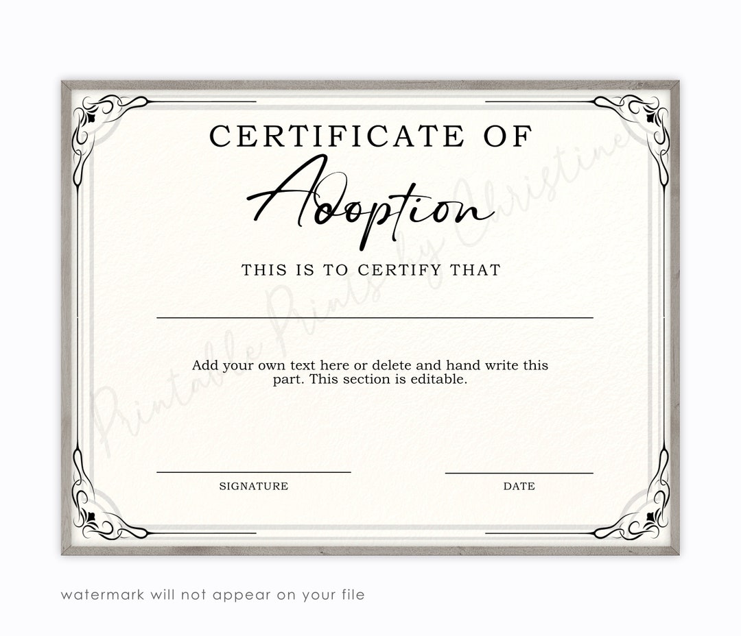 DIGITAL DOWNLOAD Adoption Certificate ~ Laz ~ Etsy