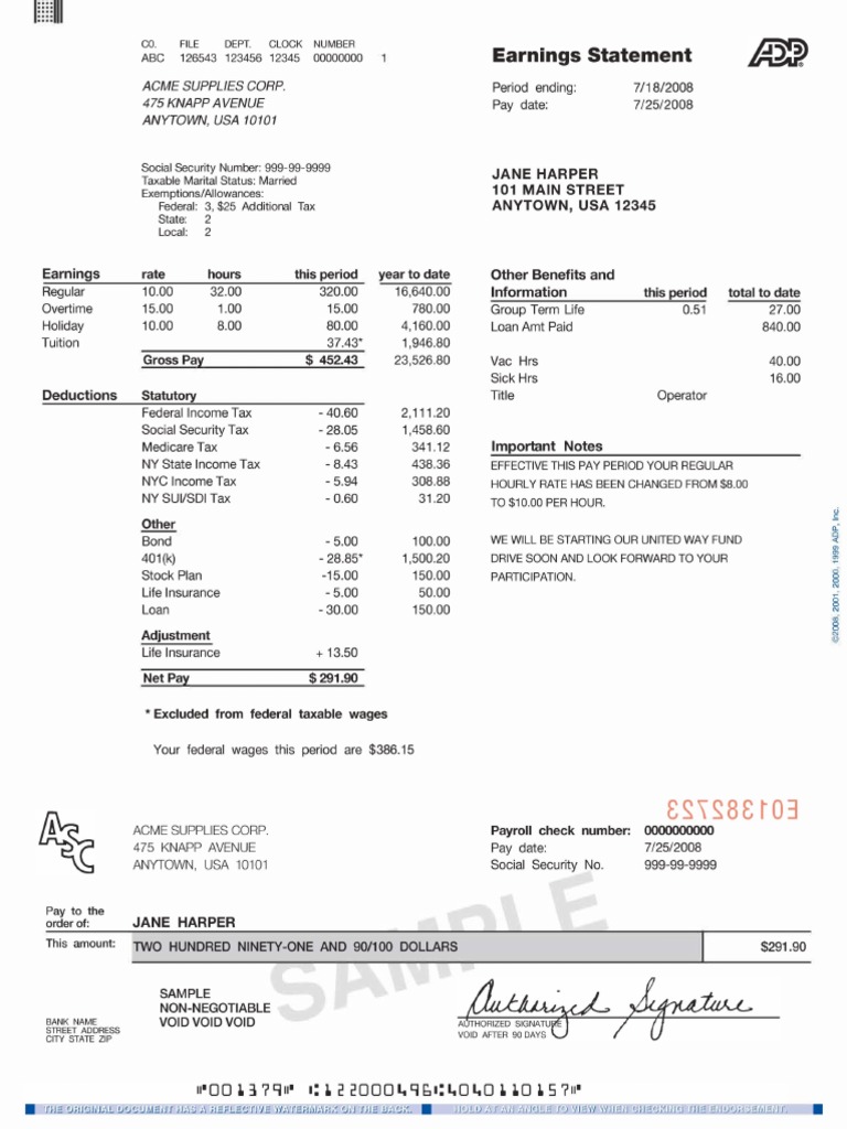ADP Editable Pay Stub Template Etsy