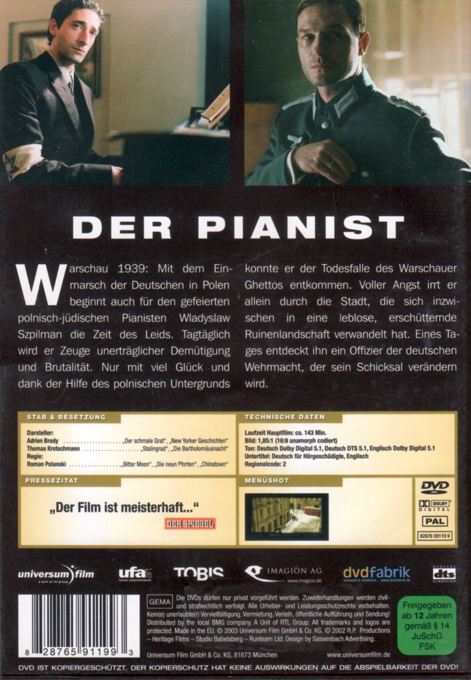 DVD: Der Pianist (mit: Adrien Brody Thomas Kretschmann) (Gebraucht) in