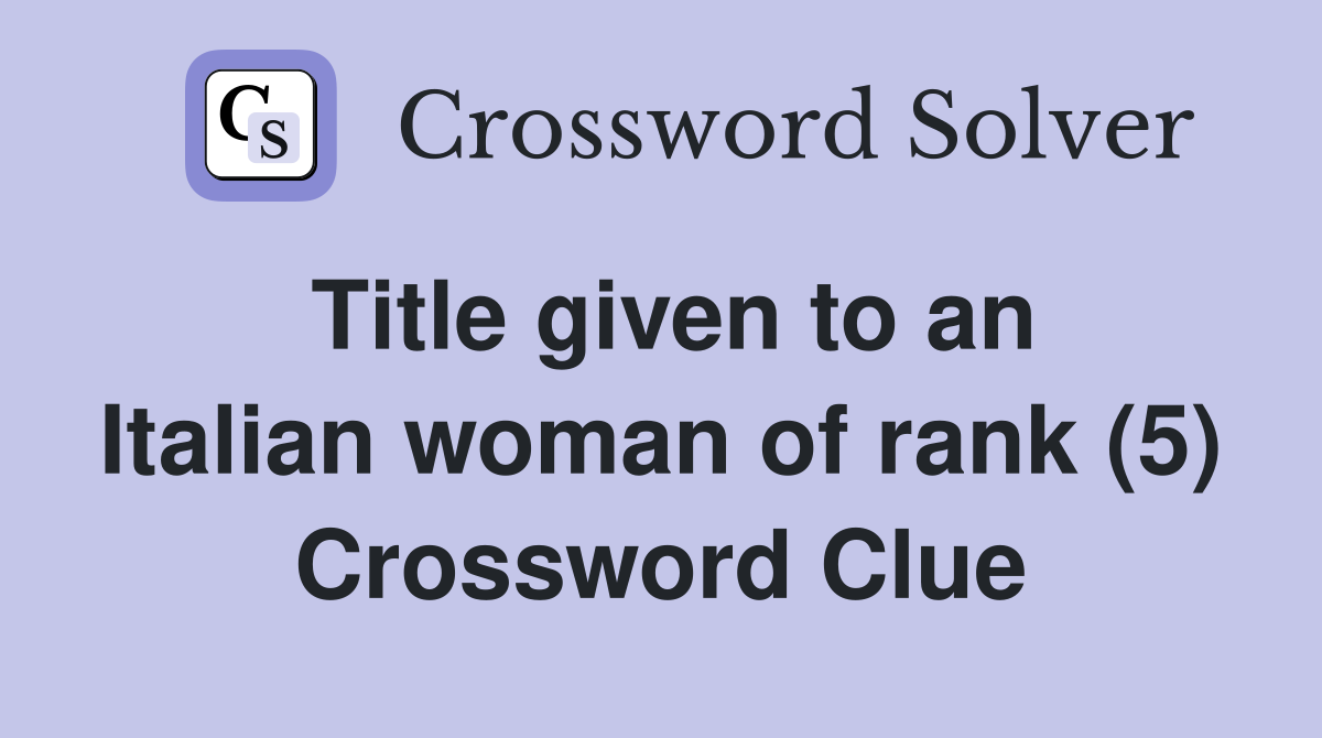 Title given to an Italian woman of rank (5) Crossword Clue Answers