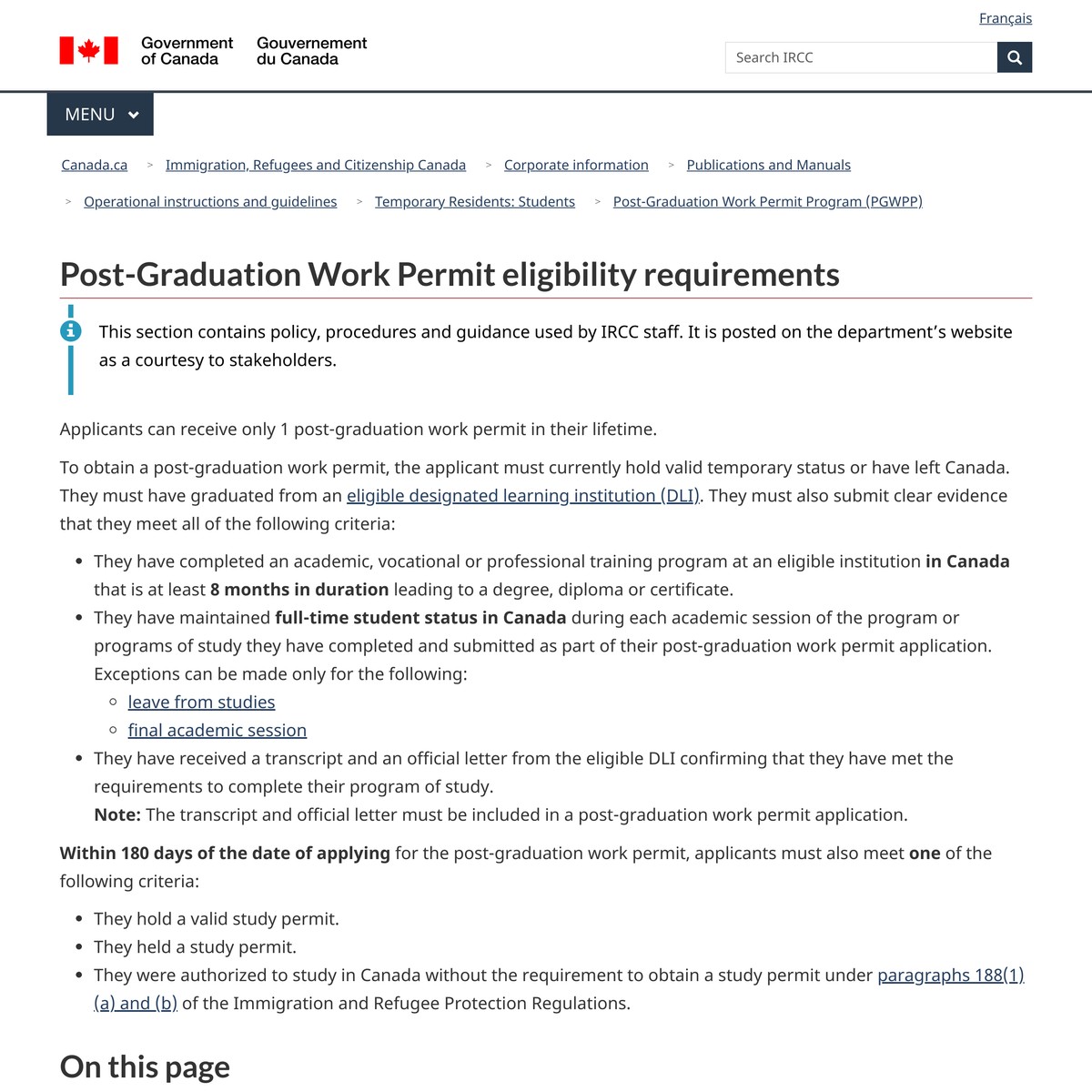 Post Graduation Work Permit eligibility requirements Canada ca Are na