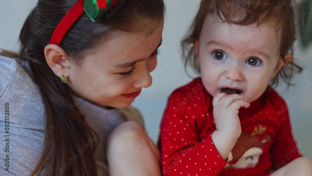 Child Girl with Long Hair Open Small Bags of Gifts Surprises Advent