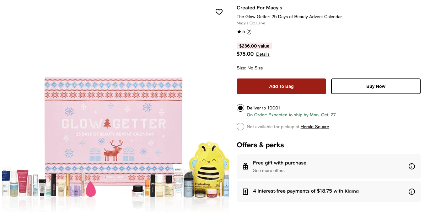 Macy s 2025 The Glow Getter: 25 Days of Beauty Advent Calendar ($75