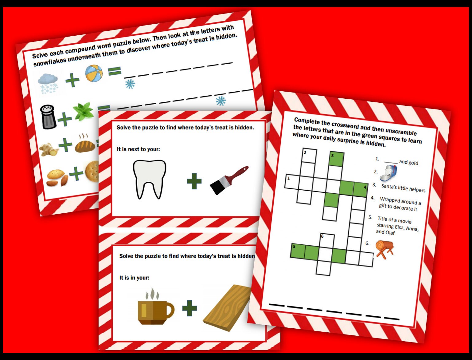 Christmas Advent Calendar Scavenger Hunt Clues Printable Puzzle Advent