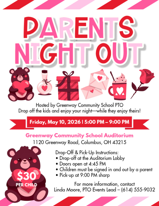 White Illustrative Parents Night Out Flyer (us Letter) Template