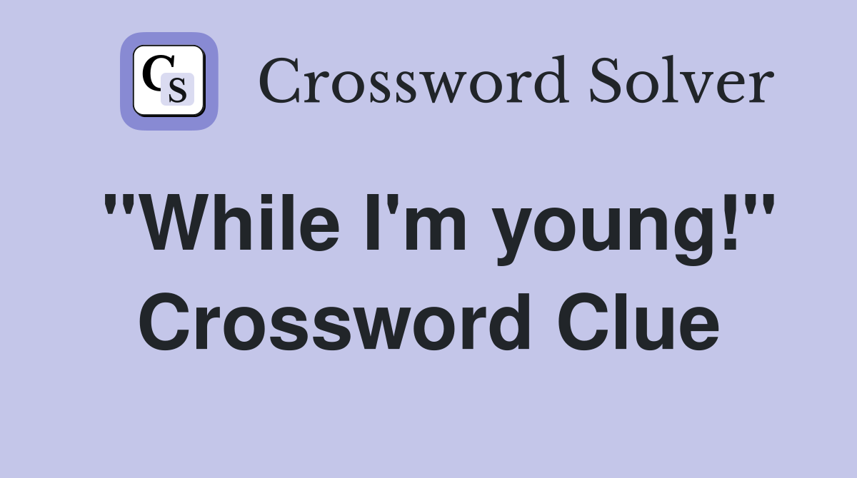 quot While I #39 m young quot Crossword Clue Answers Crossword Solver