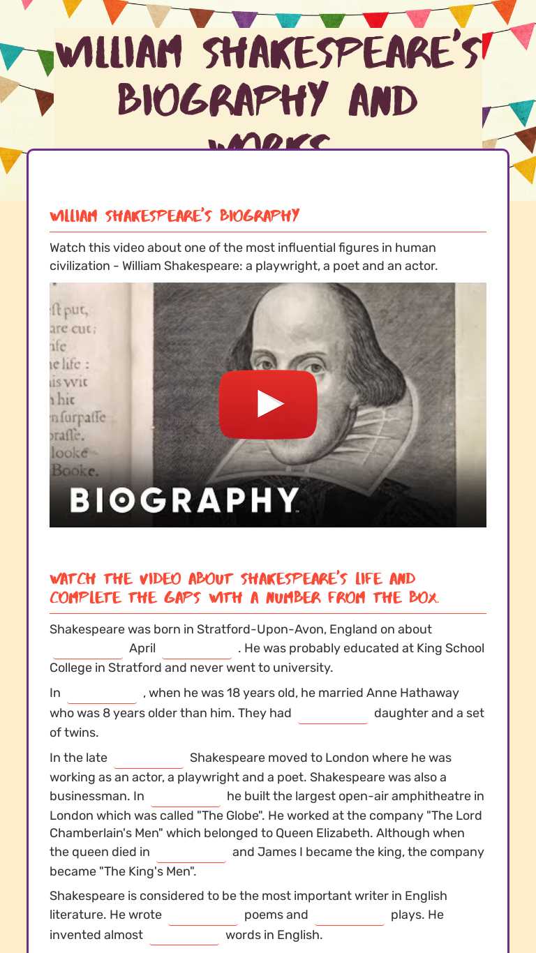 Shakespeares Biography worksheet Live Worksheets Worksheets Library