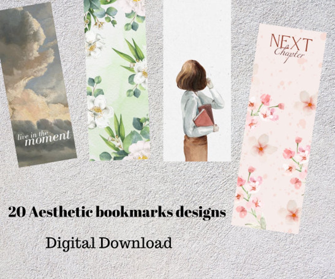 Printable Aesthetic Bookmarks Instant Download of 20 Digital Etsy