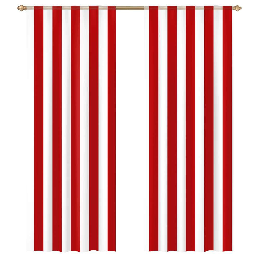 Aesthetic Raspberry Red And White Vertical Sheer Window Curtains for