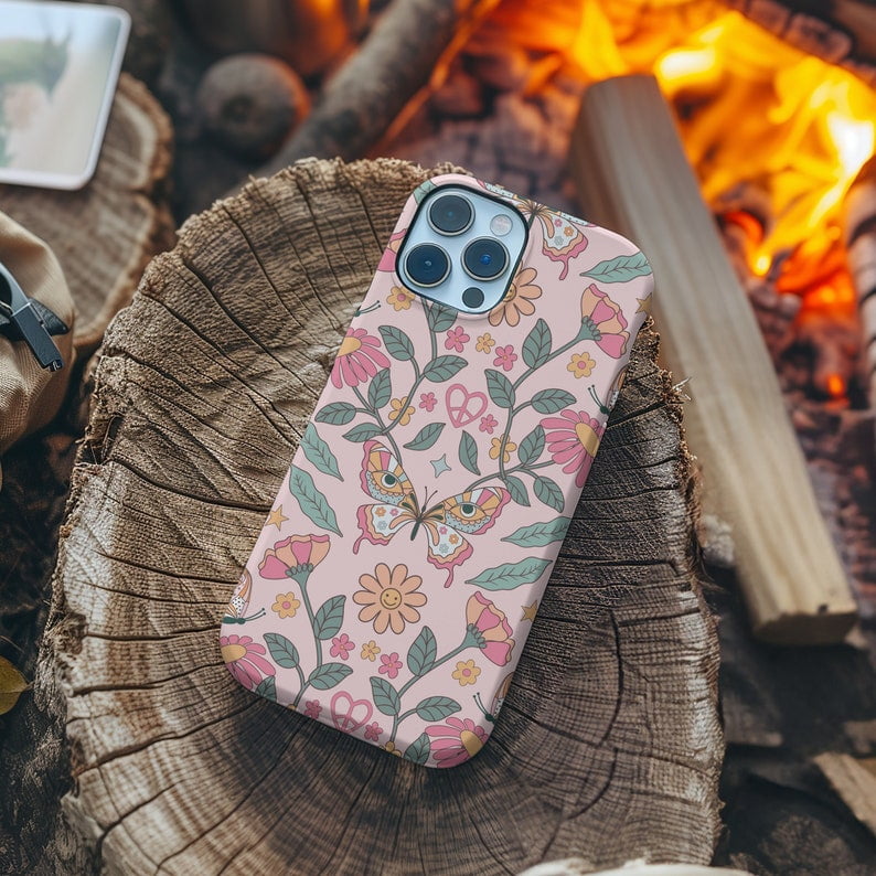 Cottagecore Pink Retro Groovy iPhone Case Aesthetic Gift for 11 16