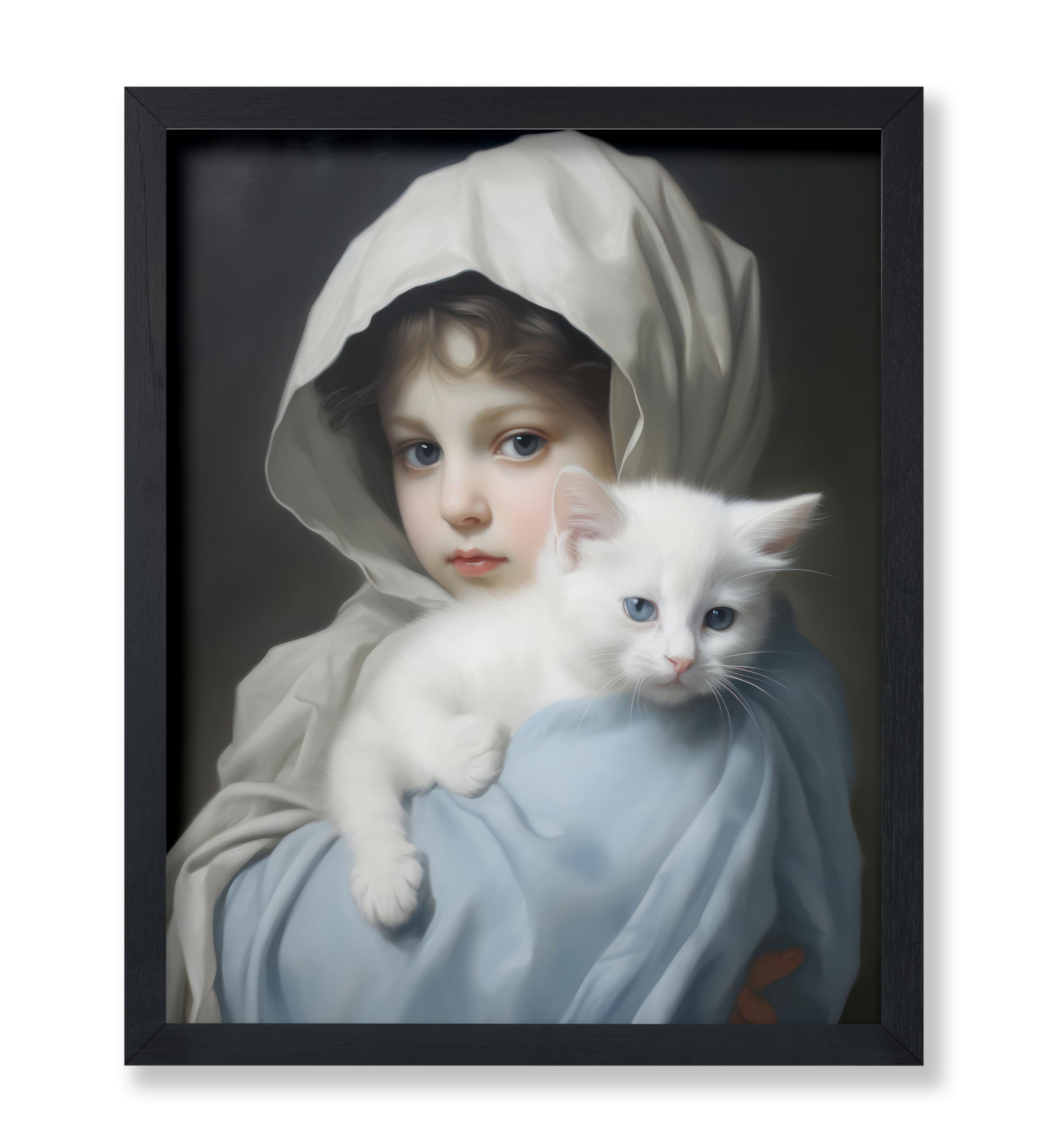 Poster Master Little Girl With A Cat Poster White Cat Print