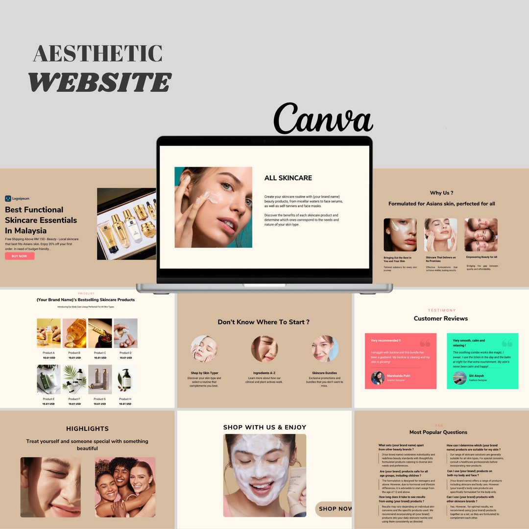 Skincare Canva Website Template Canva Template Canva Editable
