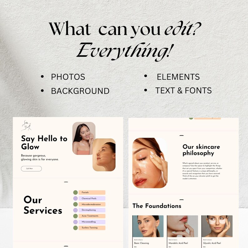 Skincare Canva Website Template Canva Editable Esthetician Aesthetic