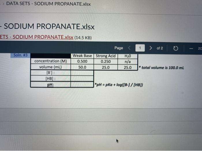 Solved gt DATA SETS SODIUM PROPANATE xlsx SODIUM Chegg com