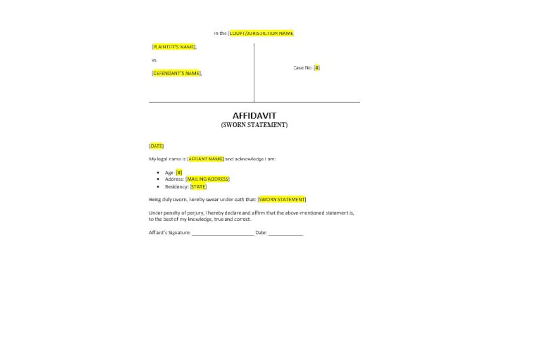 Court Affidavit Template