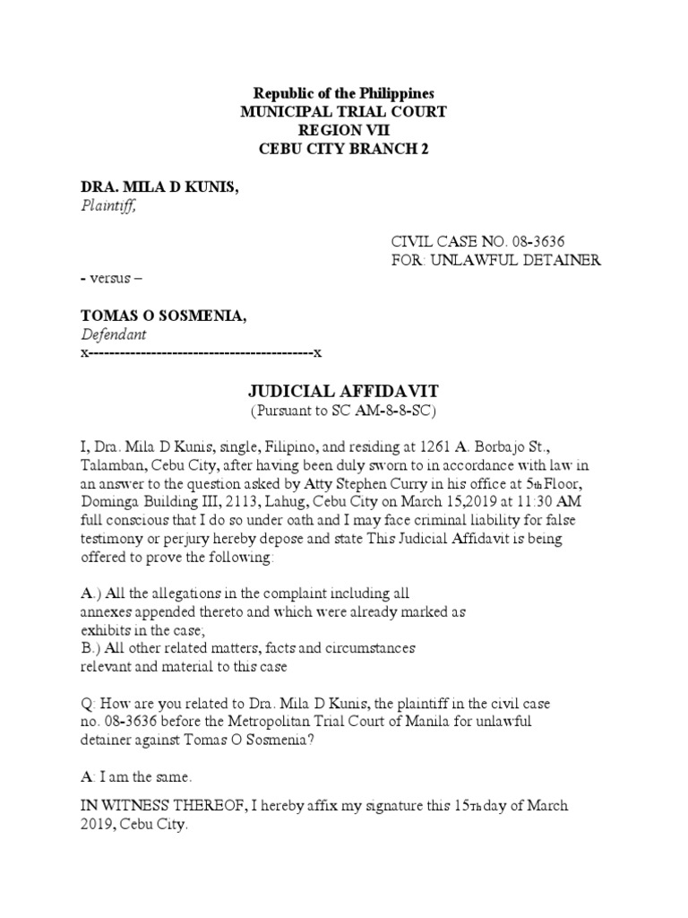 Judicial Affidavit Sample Format (Civil Case) PDF Affidavit Justice