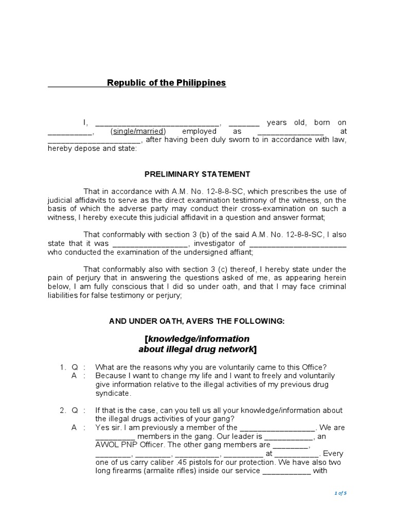 Judicial Affidavit Sample PDF Testimony Perjury