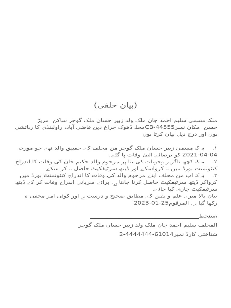 Affidavit Death Certificate Urdu PDF