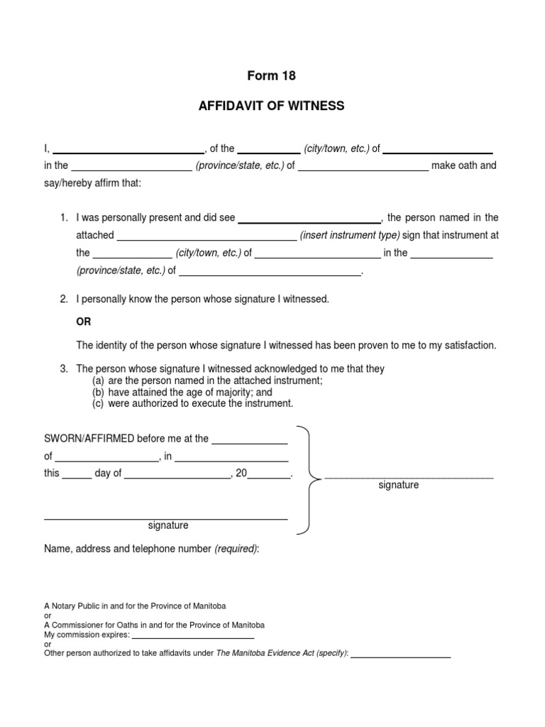 Form 18 Affidavit of Witness: (Province/state Etc ) of PDF