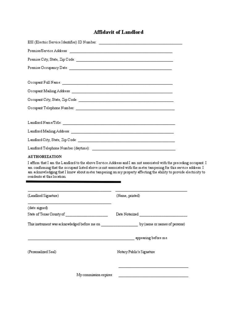 Affidavit of Landlord: Authorization PDF