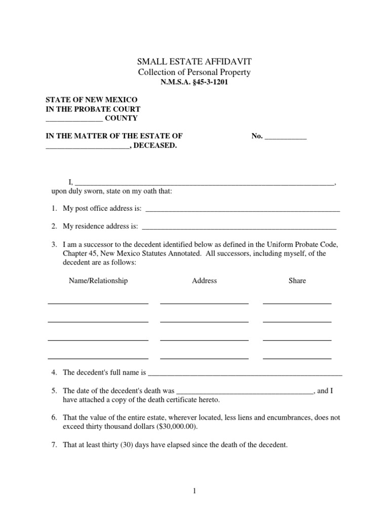 Small Estate Affidavit Collection of Personal Property PDF