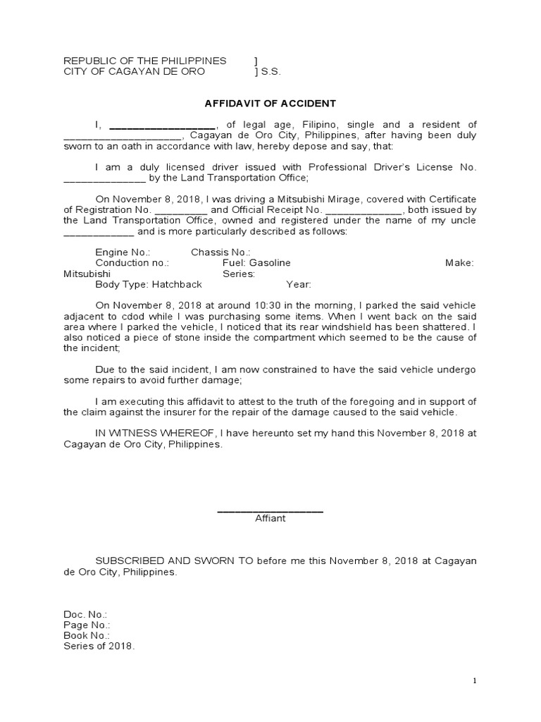 Template Affidavit of Accident PDF