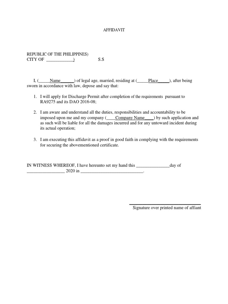Affidavit For Discharge Permit PDF