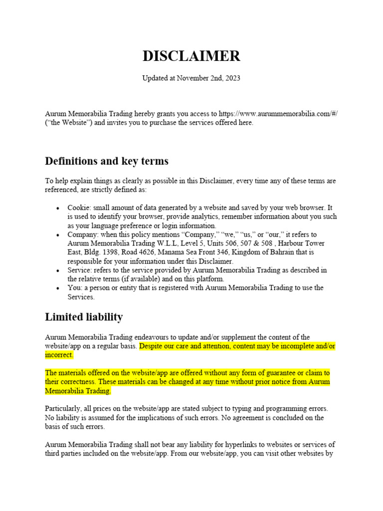 Free Legal Disclaimer Templates Examples Download Now Termly