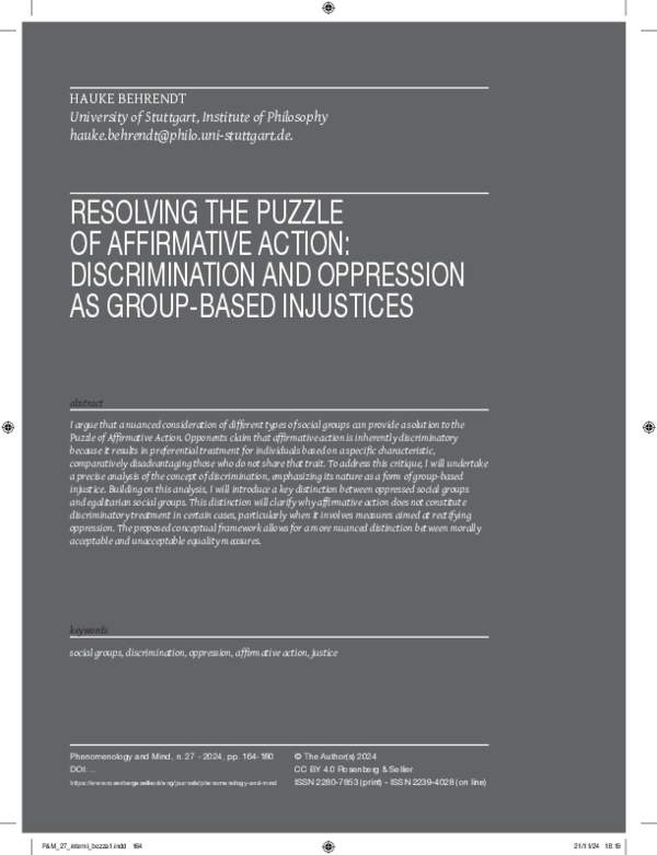 (PDF) Preprint Resolving the Puzzle of Affirmative Action (Final Draft)