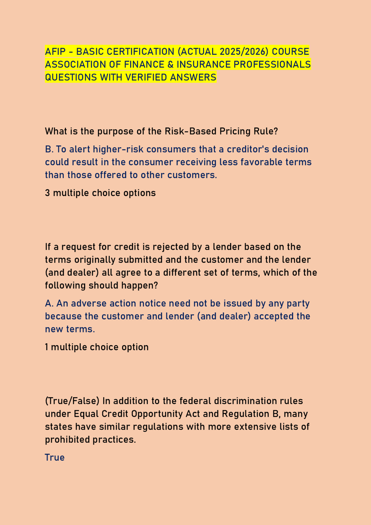 AFIP Certification Exam Latest Questions And Verified Answers 2025/