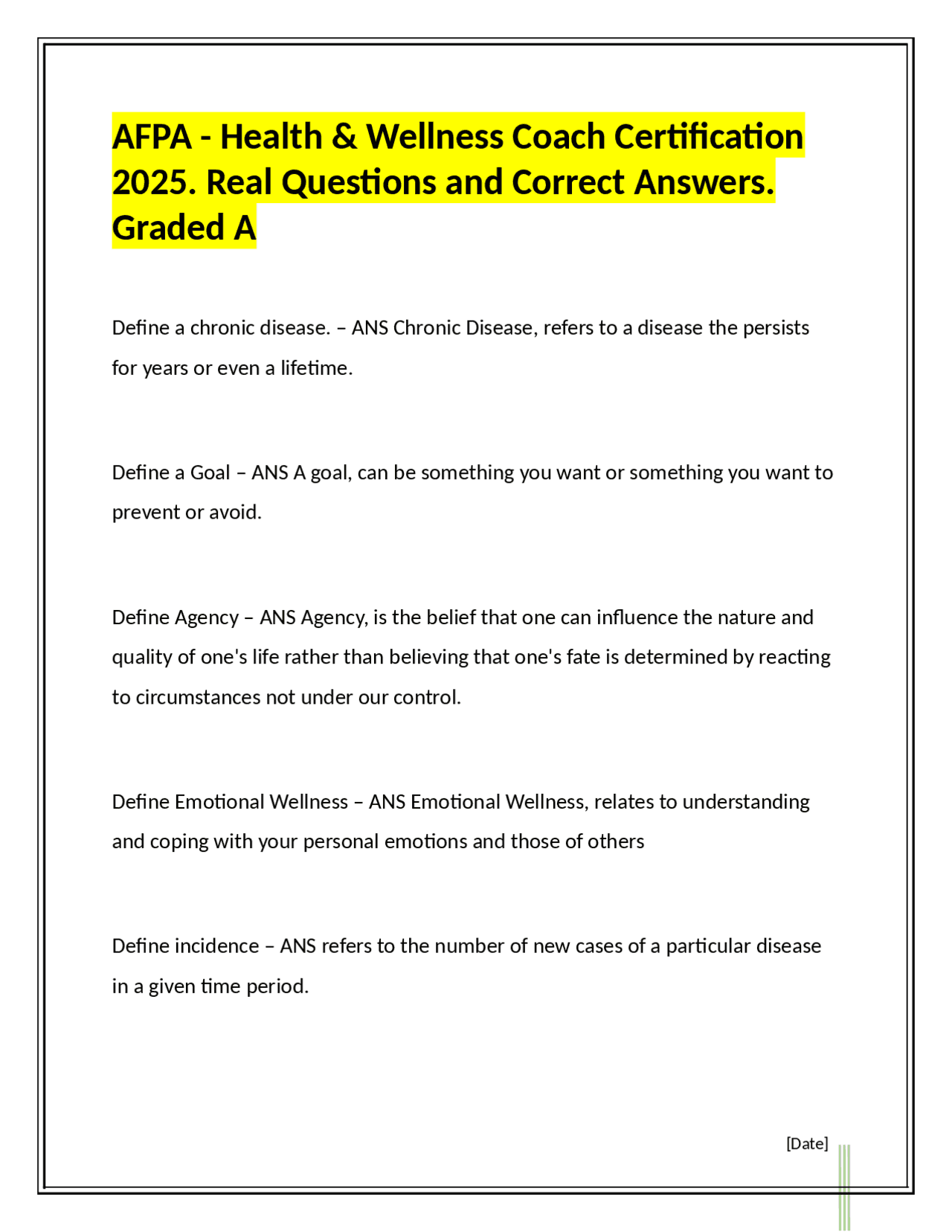 AFPA HEALTH WELLNESS COACH CERTIFICATION QUESTIONS AND ANSWERS 2025