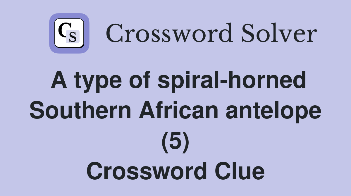 A type of spiral horned Southern African antelope (5) Crossword Clue