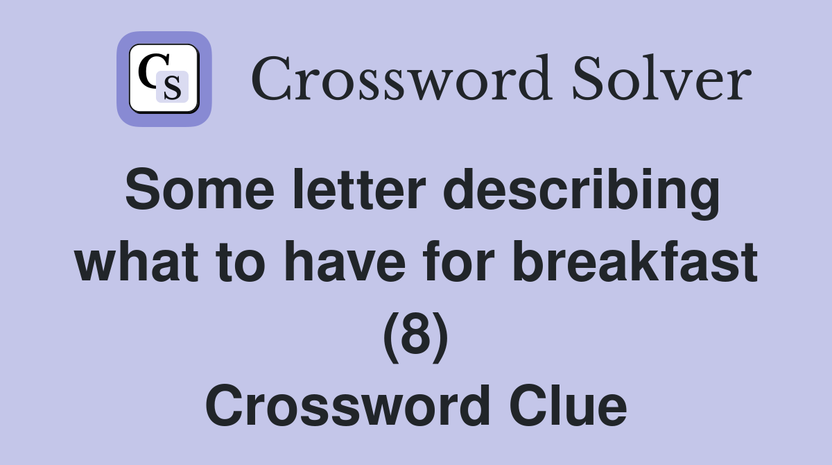 Some letter describing what to have for breakfast (8) Crossword Clue