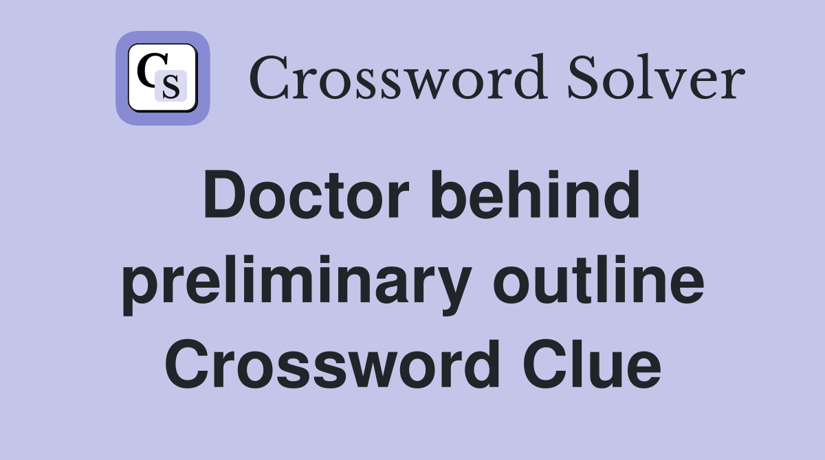 Doctor behind preliminary outline Crossword Clue Answers Crossword