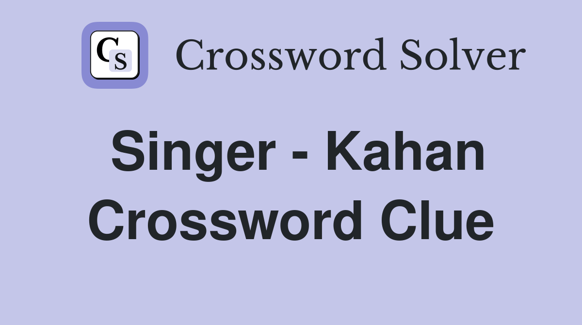 Singer Kahan Crossword Clue Answers Crossword Solver
