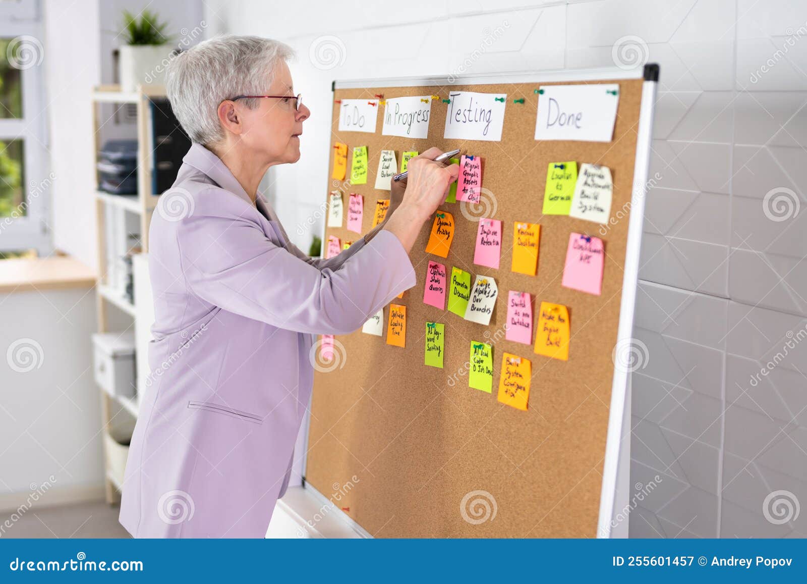 Woman Writing Kanban Plan stock image Image of adhesive 255601457