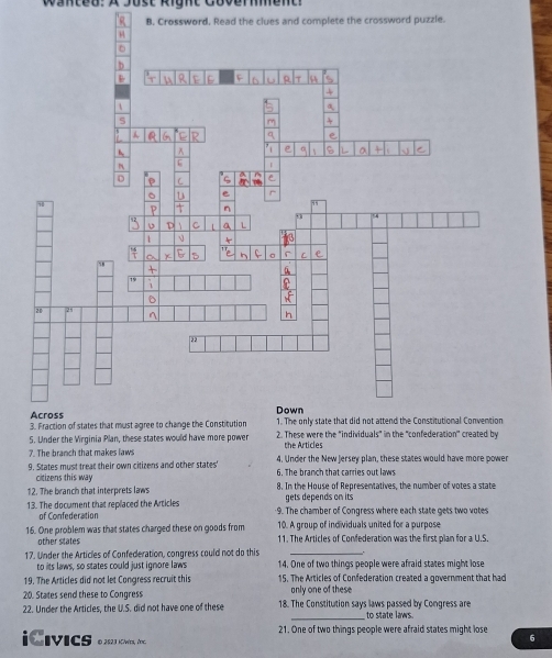 Solved: Wanted: A Jüst Right Govermment: R B Crossword Read the clues
