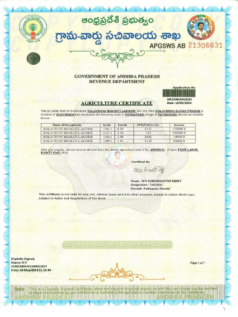 agriculture certificate PDF