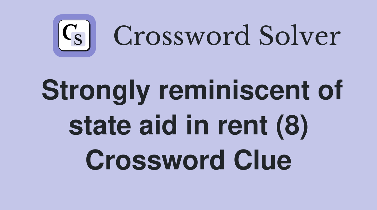 Strongly reminiscent of state aid in rent (8) Crossword Clue Answers
