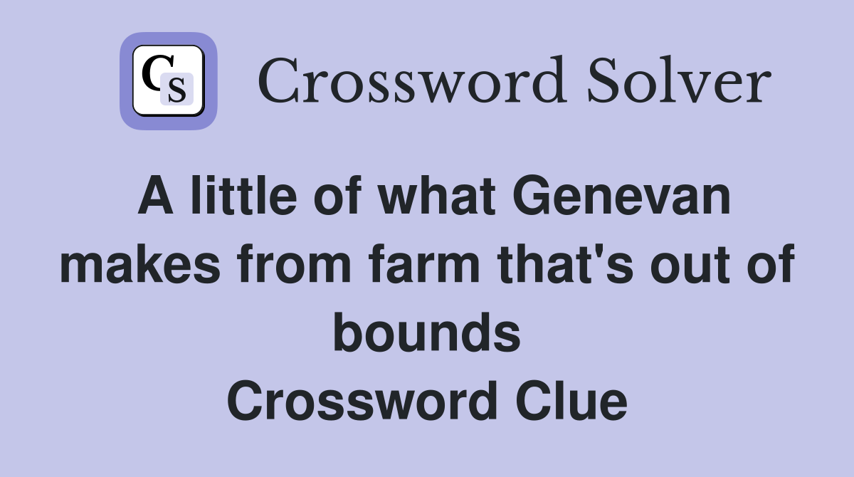 A little of what Genevan makes from farm that #39 s out of bounds
