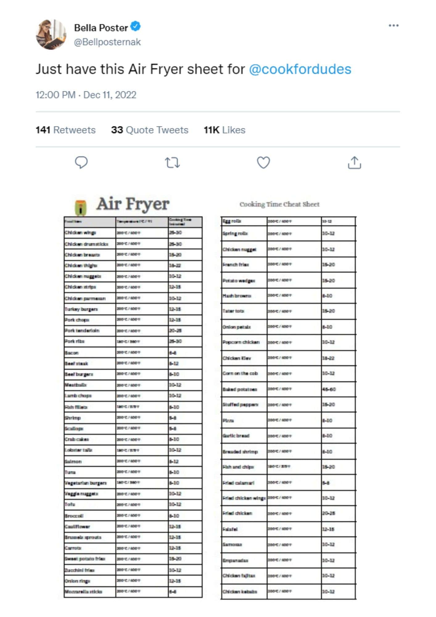Air fryer cooking times (printable cheat sheet) I Heart Umami®