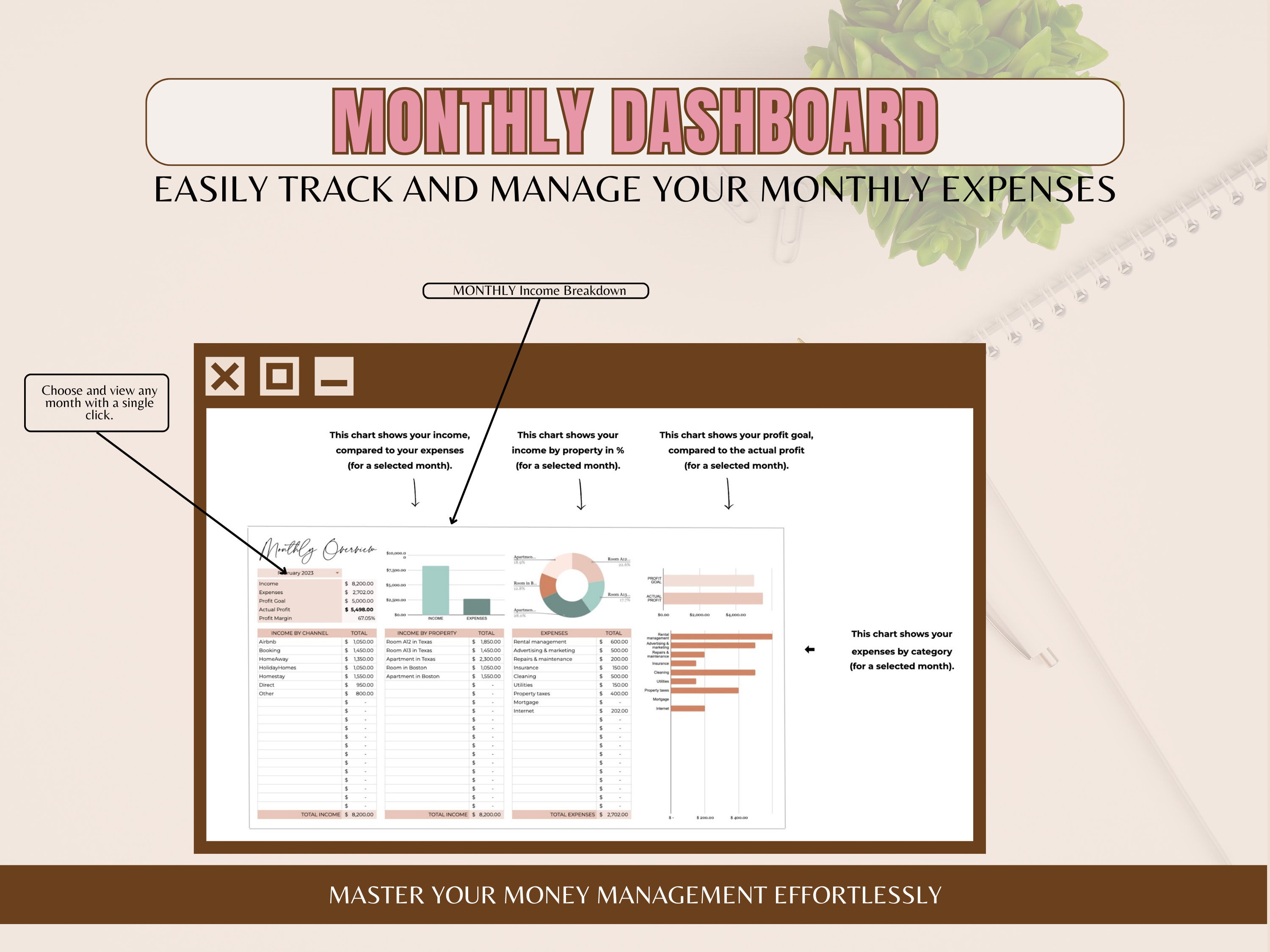 Airbnb Bookkeeping Excel Template: Profit and Loss Expense Tracker