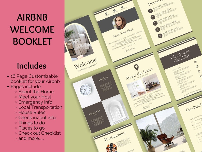 14 Pages Customizable Digital Airbnb Booklet Template printable Enhance