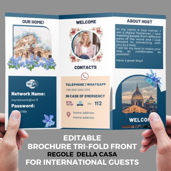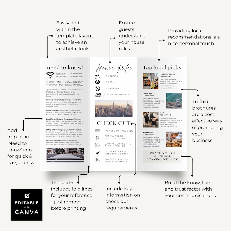 Welcome BROCHURE Airbnb Template Editable TRIFOLD Guide Etsy