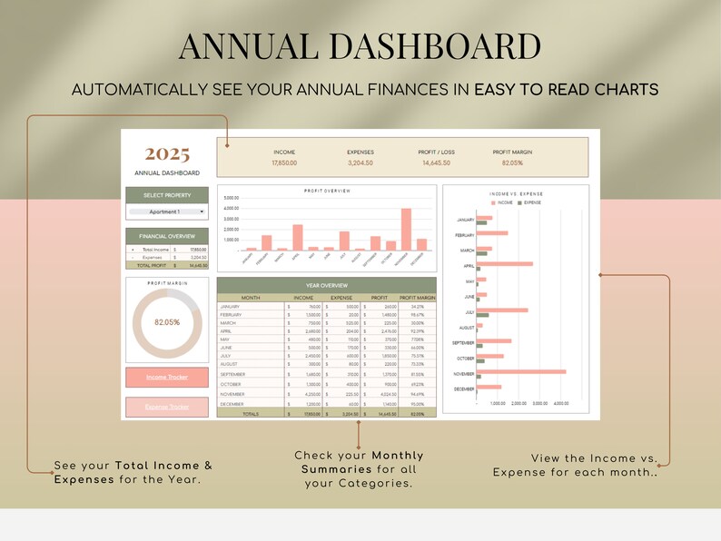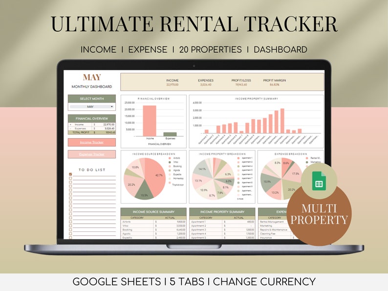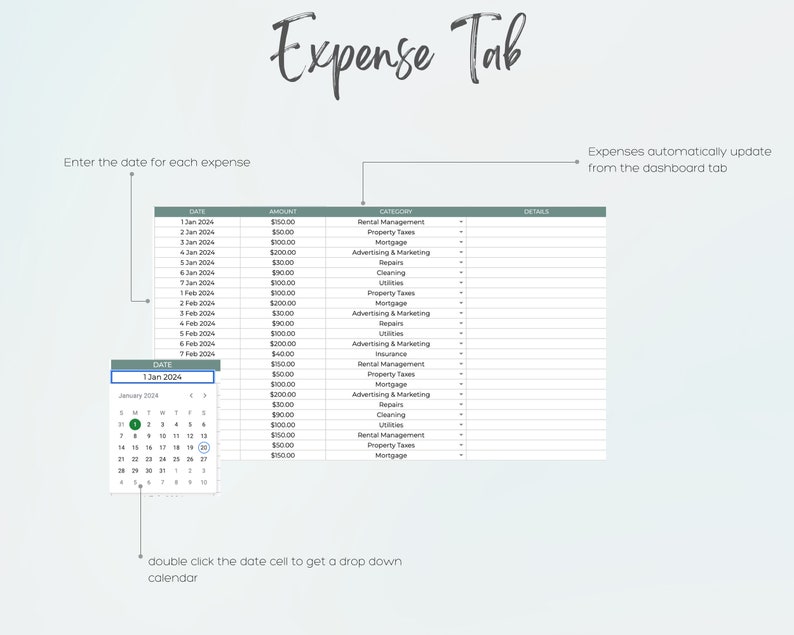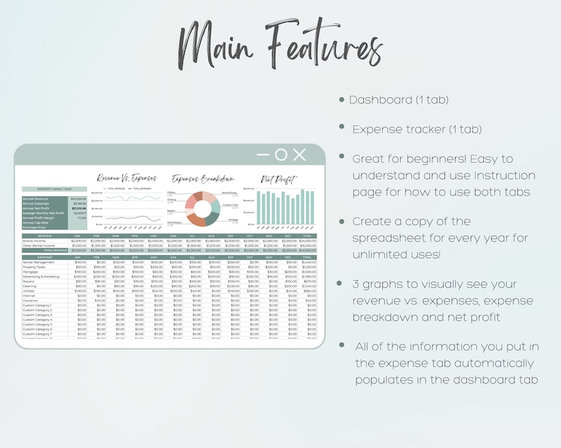 Airbnb Expense Log Rental Income Tracker Spreadsheet