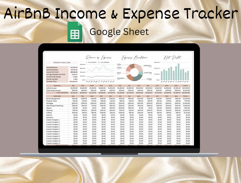 Airbnb Rental Income Expense Budget Tracker Google Sheets Vacation