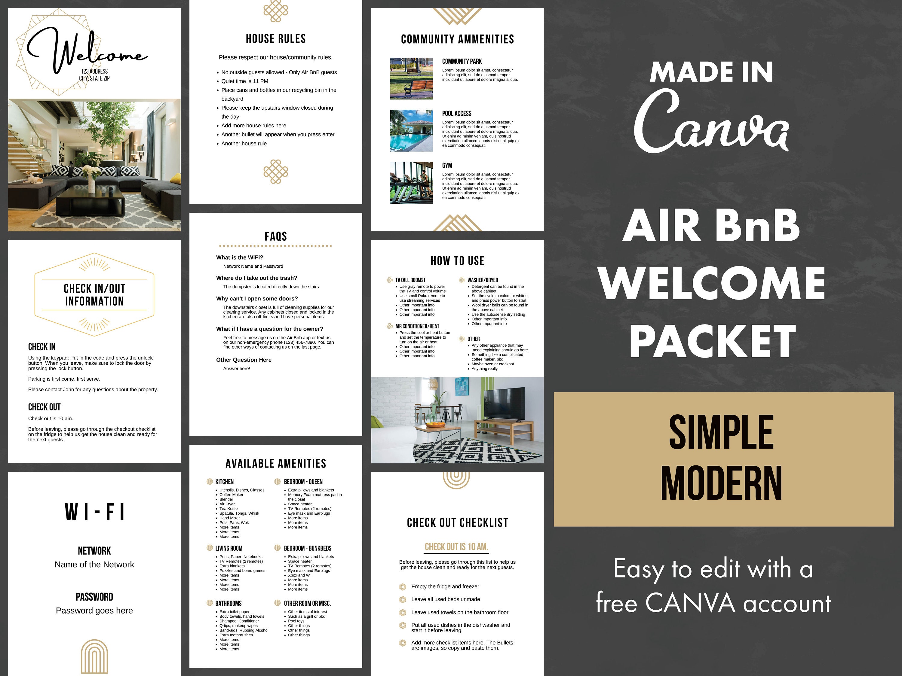 Airbnb Welcome Guide Template: House Rules Wifi (canva Editable