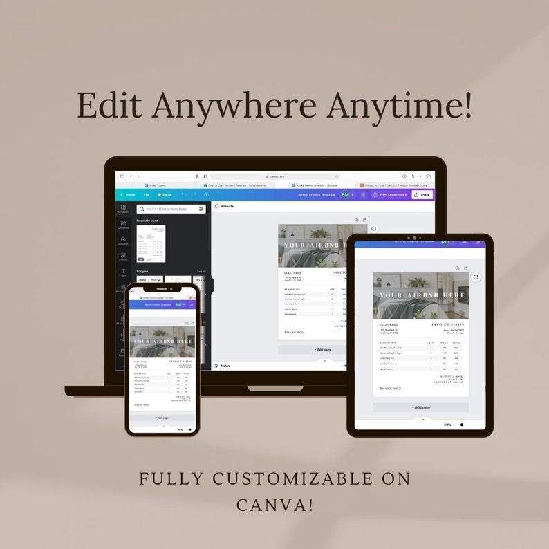 Customizable Airbnb Invoice Template Informational Printable for VRBO